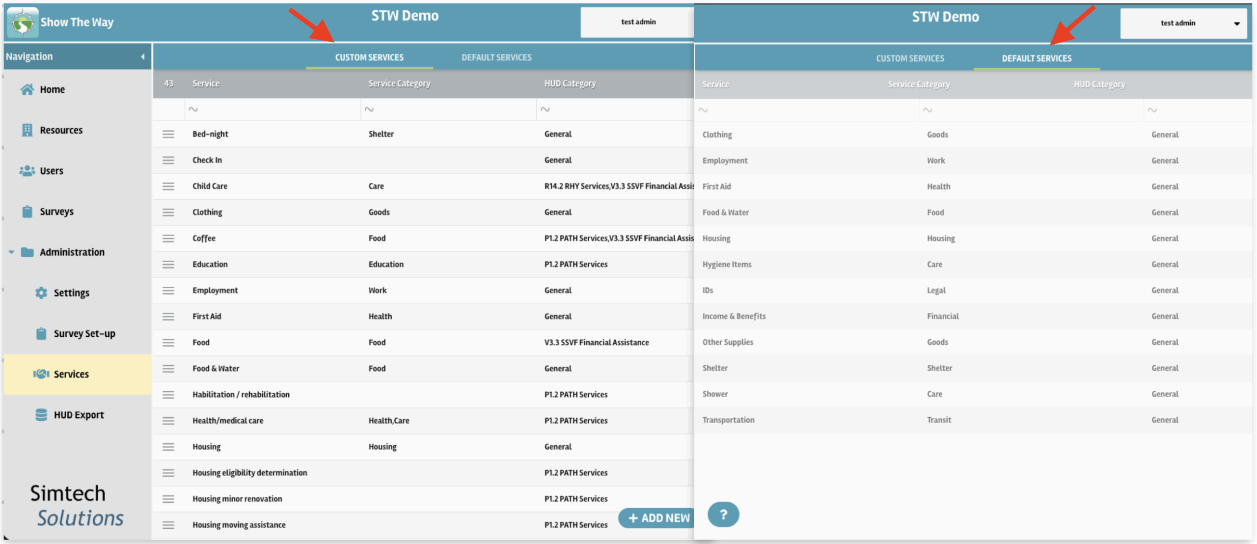 - Default Services are predefined and not editable but can be used right away. These are generic services meant for basic service tracking and are not tied to HUD elements.